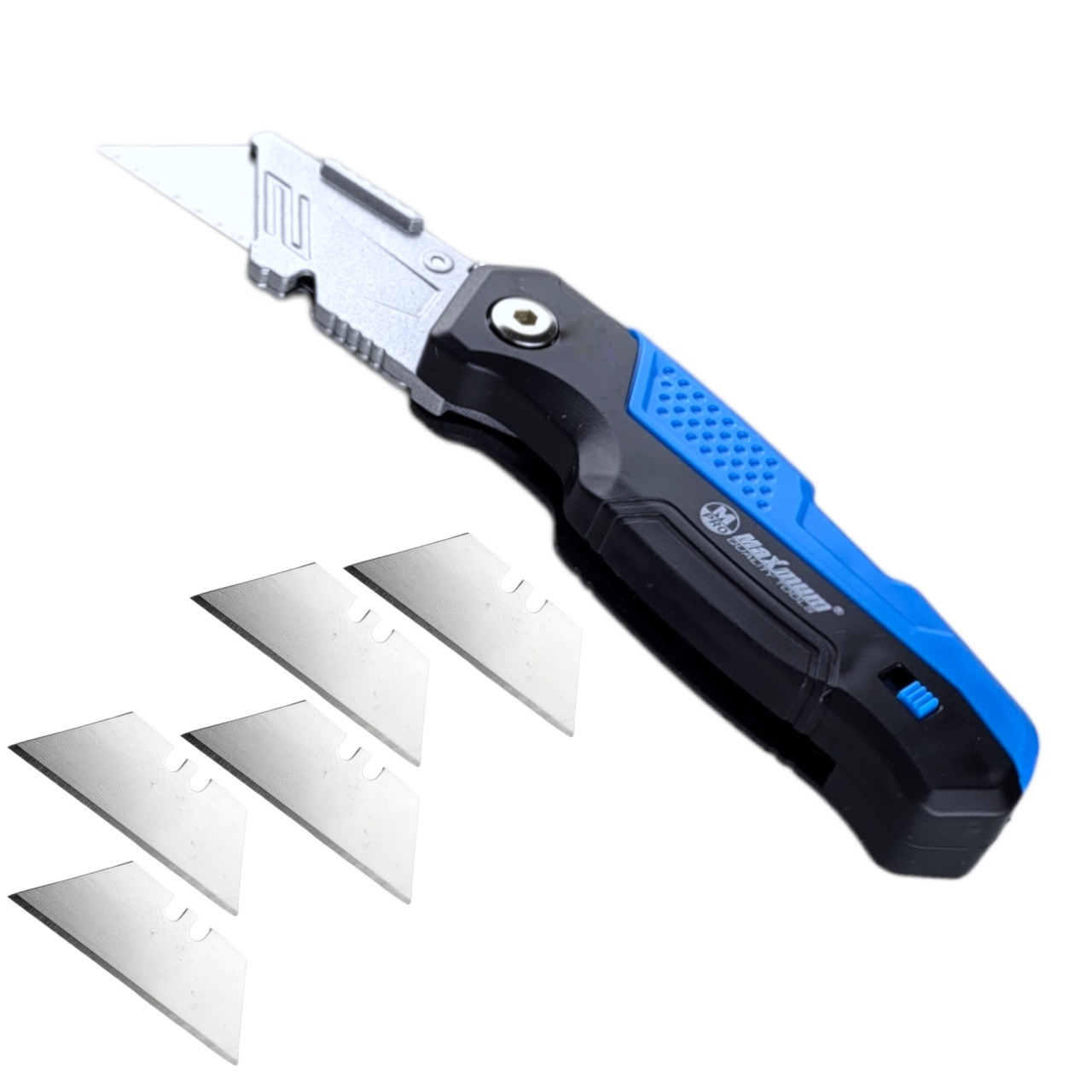 Нож строительный/канцелярский с кнопкой для быстрой смены угла резки и системой Quick Change для быстрой смены лезвий от "Maximum Quality Tools" предназначен для разрезания гипсокартона, бумаги, обоев, картона, ковролина, линолеума и т.п.