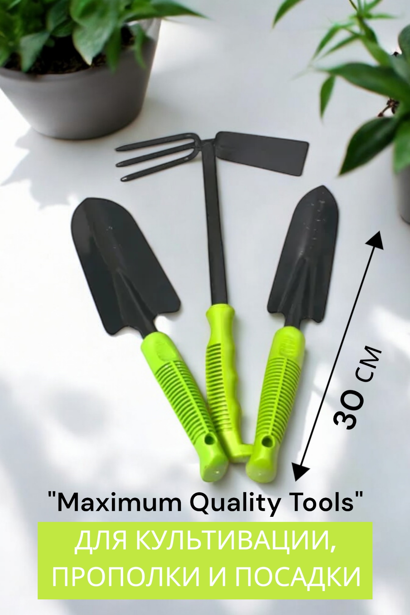 · Мини-лопатка: Незаменима для добавления грунта в горшки, выкапывания лунок для небольших растений и смешивания удобрений.