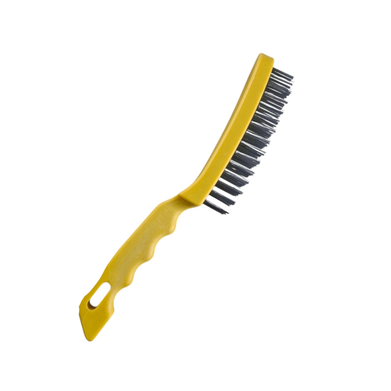 Ручная щетка с шестью рядами жёсткого металлического ворса — незаменимый инструмент для интенсивной очистки и обработки поверхностей. Она изготовлена из прочной стальной проволоки и ударопрочного пластика. Эргономичная ручка с отверстием для подвешивания обеспечивает удобный хват и компактное хранение. Общая длина щётки — 270 мм, длина жёсткого стального ворса — 25 мм.